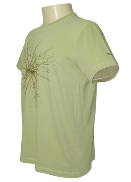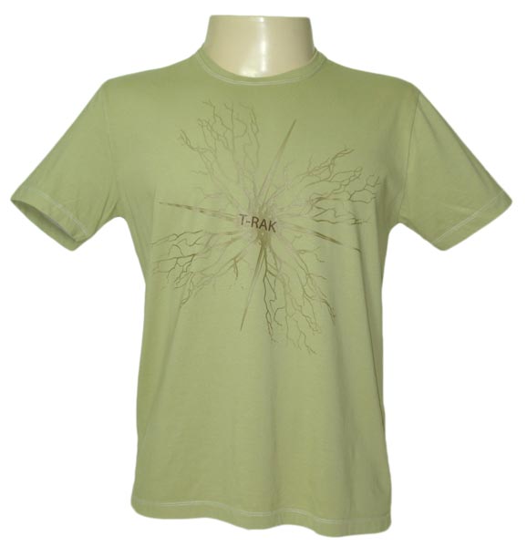 Camiseta Original T-RAK, Pintura em Silk 2 Cores com Tinta Metálica a Base D’agua. Camisa Cor Bege Escuro (Kaki), Malha 100% Algodão 30.1. Tamanhos Variados. Impressão na Frente e Costas.